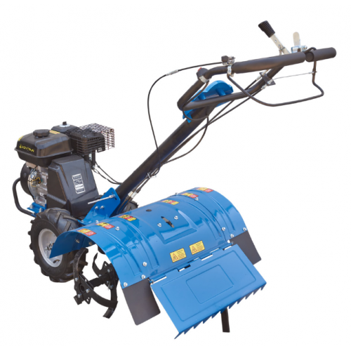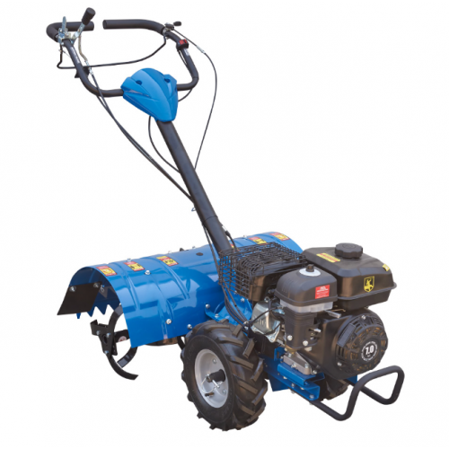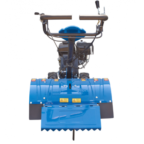 Зниження навантаження відбувається завдяки компоновці, характерної для набагато потужніших професійних машин, а саме − роторна ґрунтофреза винесена назад і приводиться в дію через окремий редуктор. У свою чергу, поступальний рух усього агрегату вперед або назад здійснюється завдяки провідним колесам з шевронним протектором «ялинка».